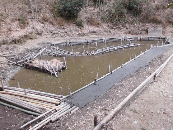 また、ビオトープへの導水確保のため、ビオトープ自身も何箇所かの補修が必要になりました。