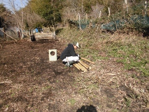 加茂に住んでいる会員の知人から提供してもらうことになった馬糞を置く場所を作りました。馬糞は定期的に運んでいただけるとの事で、半年~1年位寝かせたうえで堆肥として活用していきます。