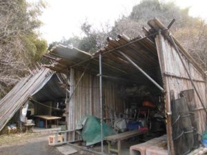 耕運機等の置き場にしている竹小屋を整理しました。不要な物品を廃棄し、棚板の交換や、新たに金属棚の設置等を進めました。今後は屋根の補修が必要です。